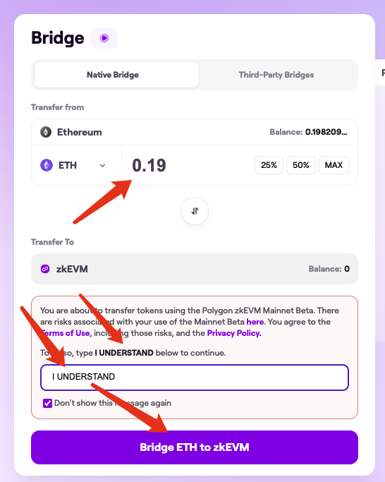 第一步跨链https://wallet.polygon.technology/zkEVM-Bridge/bridge