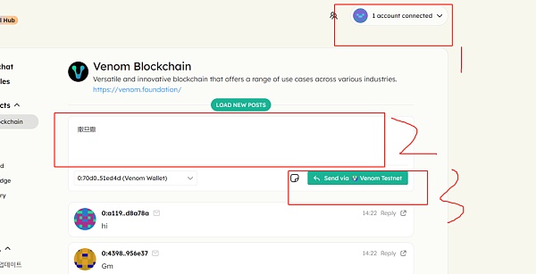 2.发送链上消息,链接钱包,然后再随便打几个字或者发一个表情,点击图中3的位置即可