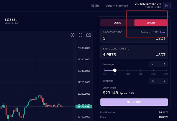 1.链接钱包,然后做多(long)short做空