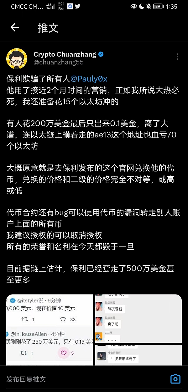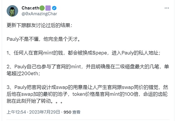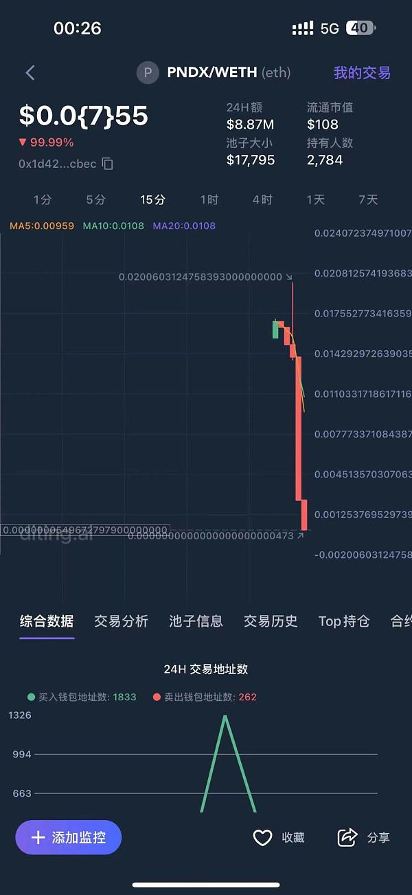 由@Pauly0x发起的天王级项目$PNDX,老外开盘猛冲,但由于合约部署问题,被以@0xSunNFT为首的套利国人大佬掏空了池子,老外损失惨总,最多的老外已经亏了七八十wu。