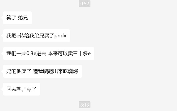 这一次B圈无数人资产归零了,还好我昨天睡了,搞不好也进去了,韭菜,大v跑慢了的全部被埋,我一个朋友的经历,吃饭前:买了0.3e出来了准备去吃饭,吃饭中:价值30多e高兴坏了,吃饭后:烧烤吃完了,准备回去了,一看归零了!顿时就是国语m.m.p。