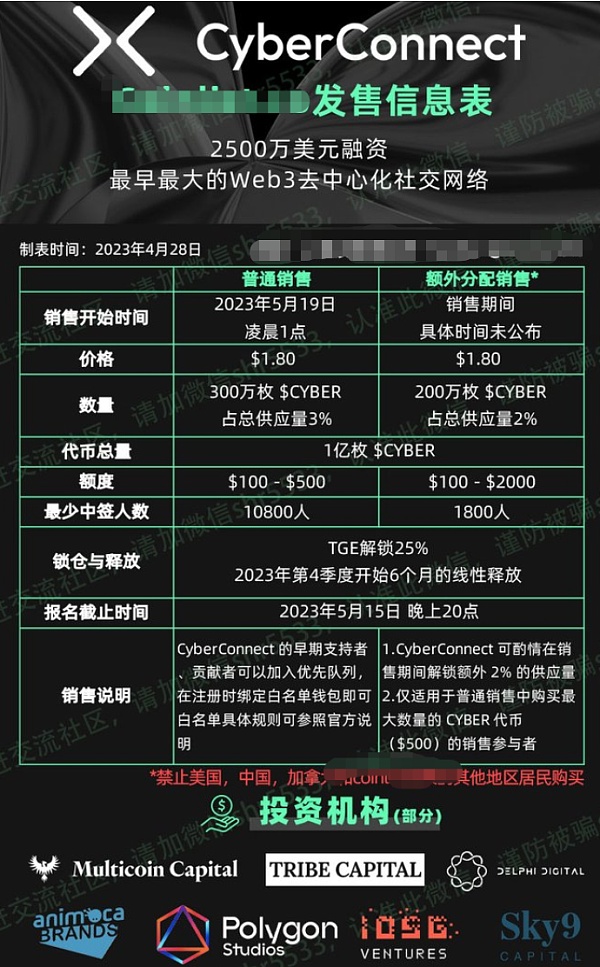 cyberconnect共经历四轮融资,最后一轮在cl上面完成,价格为1.8刀,投资机构ab,ba,Mask Network等。