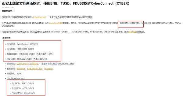 币安上线的CYBER是什么来头 撸空投的麻了啊 开盘预计20u一个