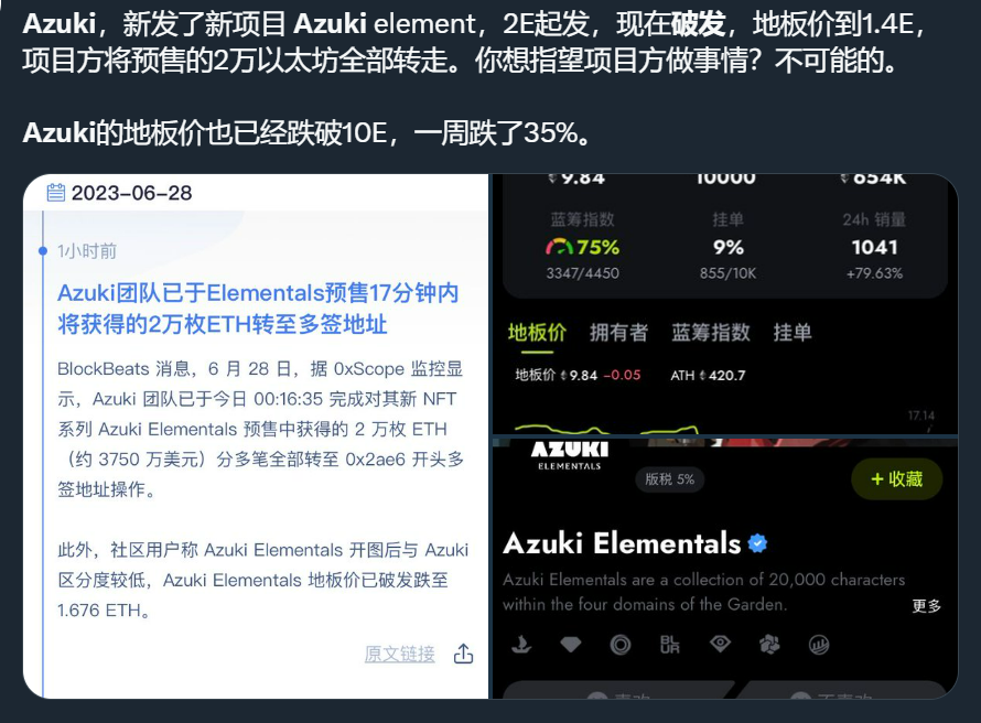 完全有理由相信,因为去中心化的变革,我们正在加入,越去中心化对我们越有利,这样属于我们的东西才真正属于我们,不存在跑路,项目方不干了,azuki项目方增发大量同质化NFT,导致社区分裂,价格暴跌,项目方拿走市场发行的2万e,这是我们前段时间亲身经历的事件。