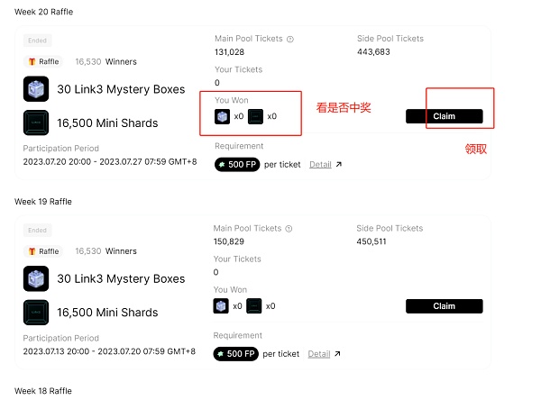 最后就是抽奖活动,如图操作就行了,今天投不了票,今天刚刚结束上一轮,这个上面任务每天坚持做,项目方还准备两期空投,最后融资就是1.8u一枚了,赚钱是肯定的,记得每天投票,中奖碎片了记得领取哦。