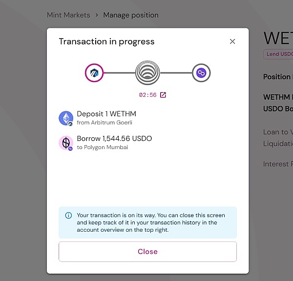 第三步开始获取池子对应的代币选择polygon的usdo,点击mint