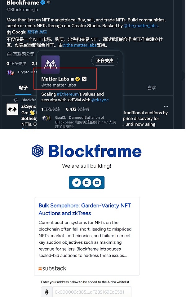 Blockframe 是由 Matter Labs 支持的 NFT 市场 众所周知,Matter Labs 是 zkSync 的母公司 加入白名单不亏:https://blockframe.io