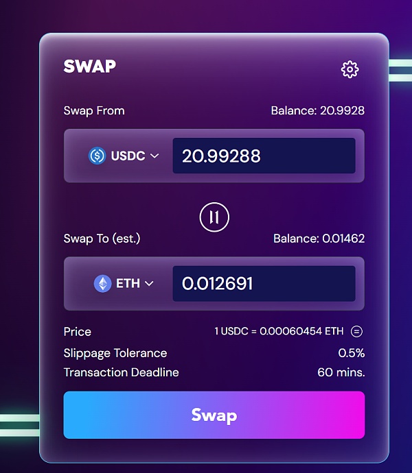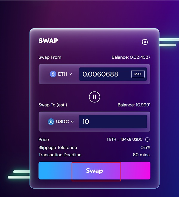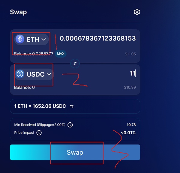 3.打开网站https://www.myswap.xyz/ 兑换usdc,根据金额自行决定