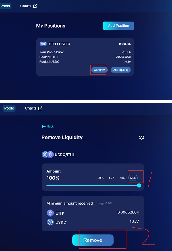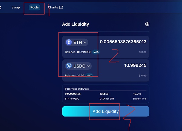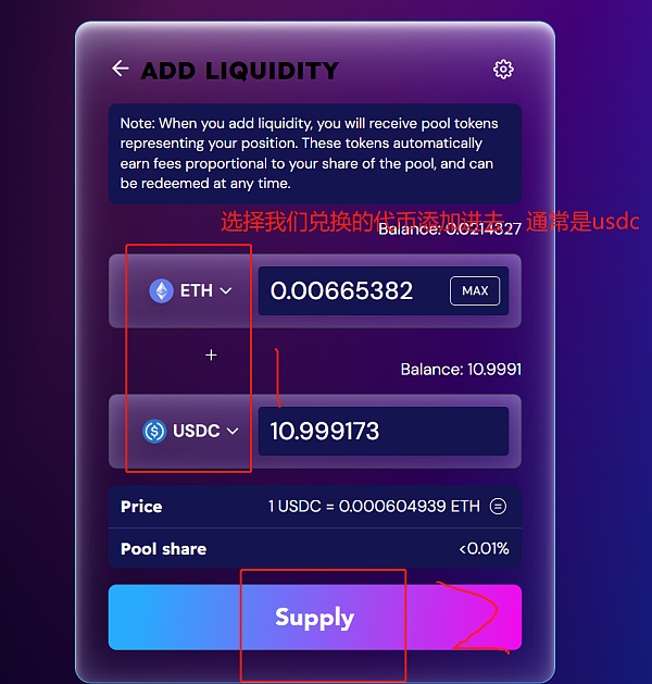4.添加池子,把刚刚兑换的代币全部添加到池子,然后点击第三步确认