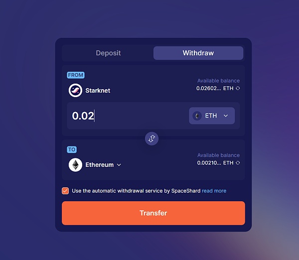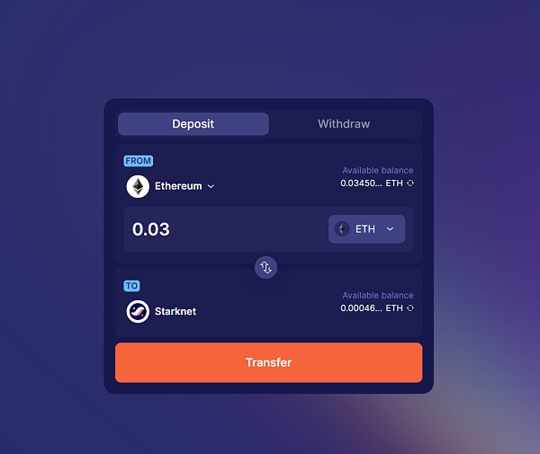 连接你的钱包 将ETH从以太坊转移到Starknet