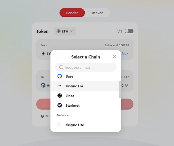 然后再给你们推荐一个跨链桥,gas很低,支持很多链,base,linea,zksync,zkevm等都有,很方便,走过一次官方桥后就可以使用这种便宜的跨链桥
