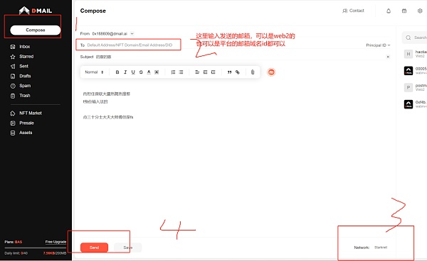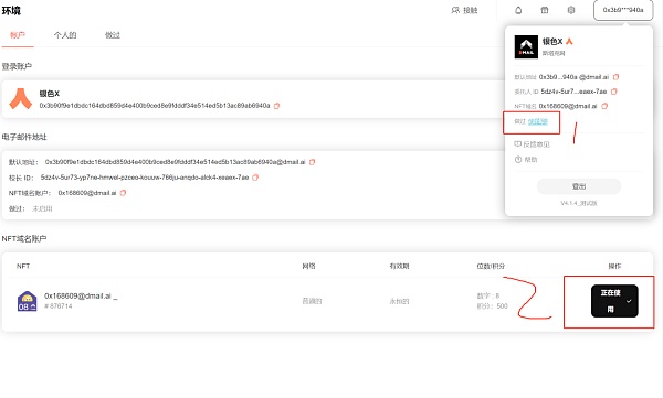 然后去注册邮箱域名,是免费的付一个gas就可以了