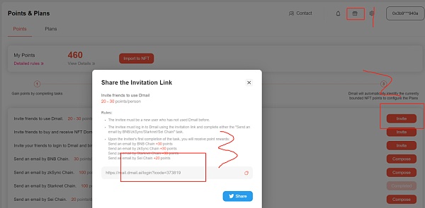 12.邮箱低成本交互,每周可以刷一次,这个项目方跟gpt老板的世界币有合作,本身也融资上千万空投也是有的,目前zksync,和stark两个网络交互一次有100积分,邀请也有积分