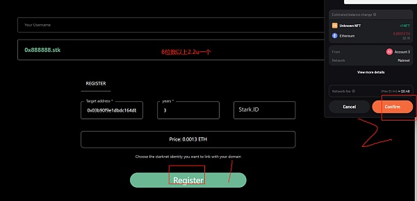 2.注册域名,选择8位数以上的https://starkid.pro/app