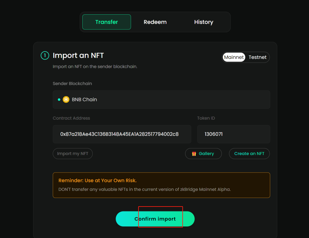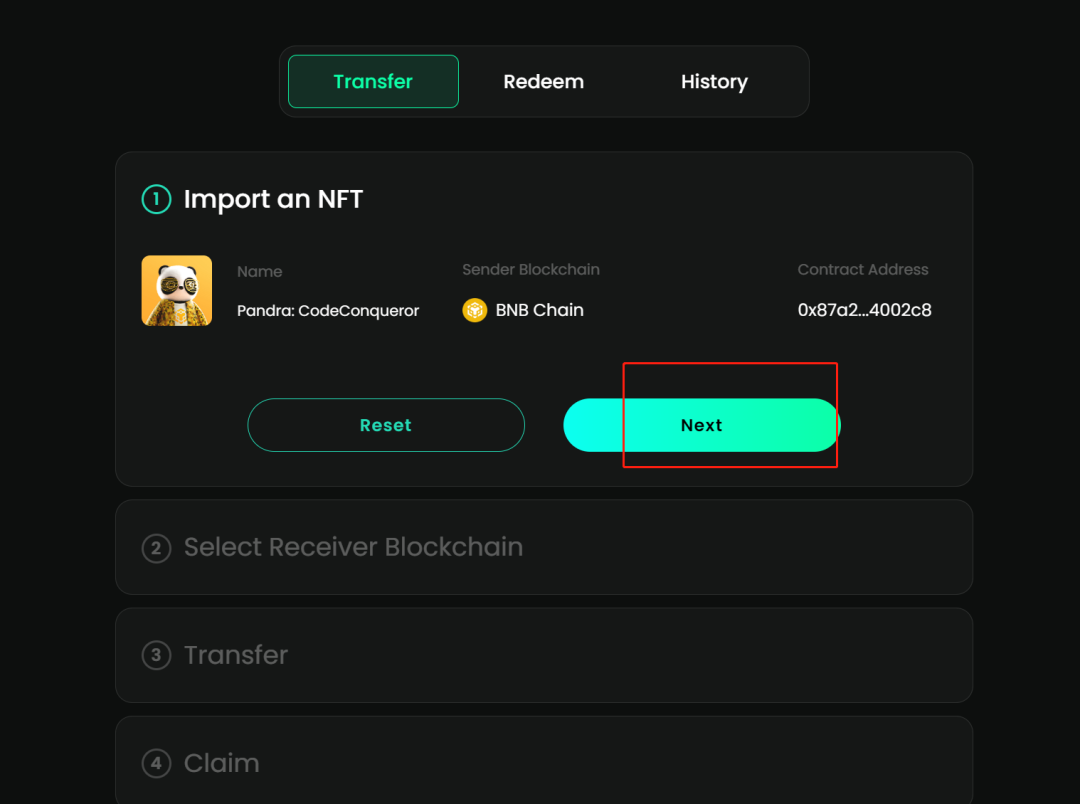 3.开始跨链,进去以后直接点击红框,进入下一步