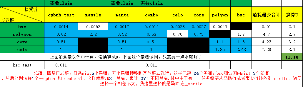 最后是做的每一个链的统计,你们可以看一下,根据情况安排跨链网络。