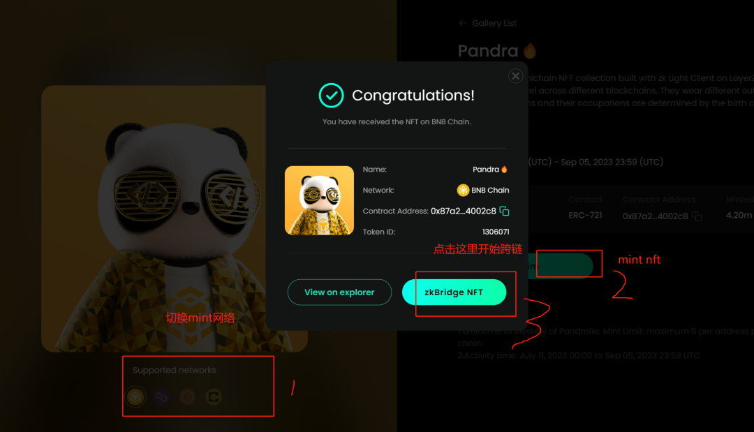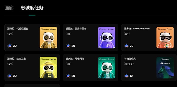 任务小技巧:原始链的四个熊猫样子,bsc 链熊猫披个外套戴个眼镜、polygon链熊猫戴个耳机、core链熊猫胸前麦克风、celo链熊猫穿背带裤戴帽子,熊猫胸前logo是熊猫当前所在链