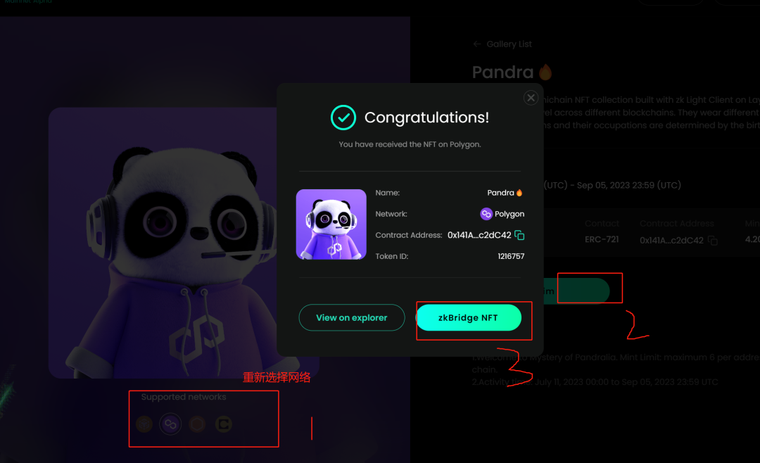 9.返回第一步重新开始上面的流程,把网络都走一遍,一个网络有6个nft,活动9月5号截至,尽快跨完网络