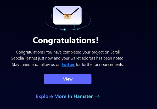 部署Scroll生态项目Hamster 9月5号空投NFT 零成本交互空投