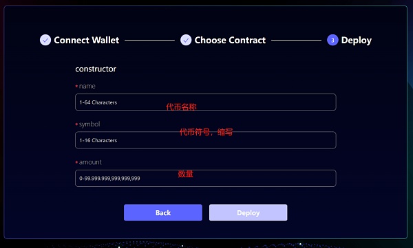 第五步部署合约,填写完成后点击deploy,然后钱包确认