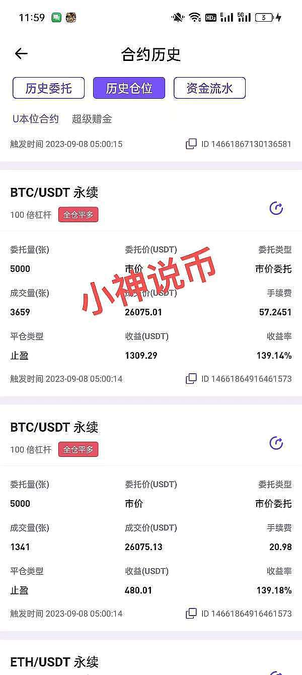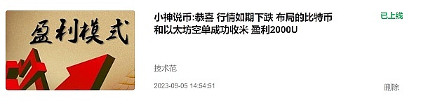 小神说币:恭喜 比特币(btc)空单拿下2000点 以太坊(eth)空单拿下100点 给力