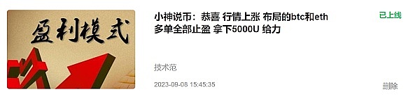 第一单:比特币和以太坊布局的空单,盈2000U,可查看: