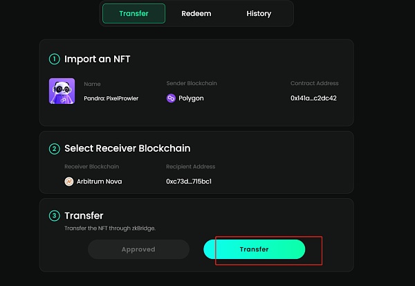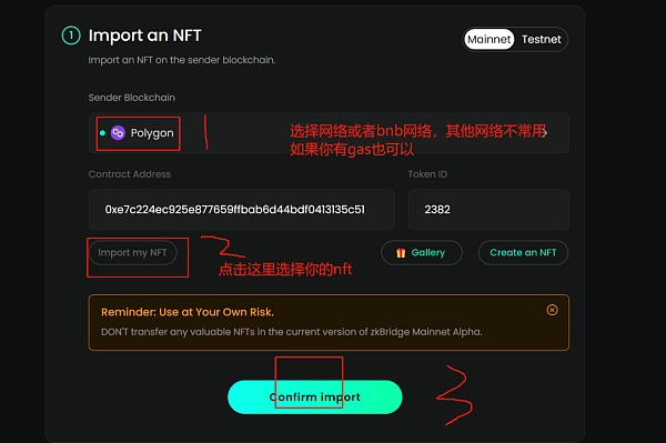 第七步zkbridge平台跨链,选择polygon或者bnb(从第六步过来不需要选择,直接下一步)