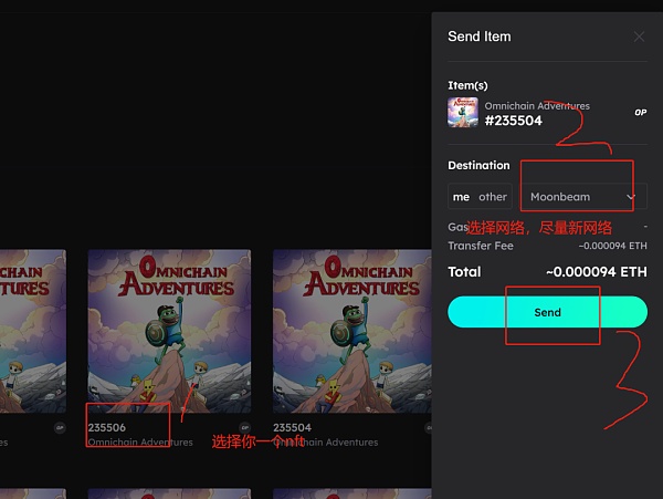 第三步在omni跨nft,之前教程这个平台mint了20个nft,随便发就是,gas很低适合刷月活