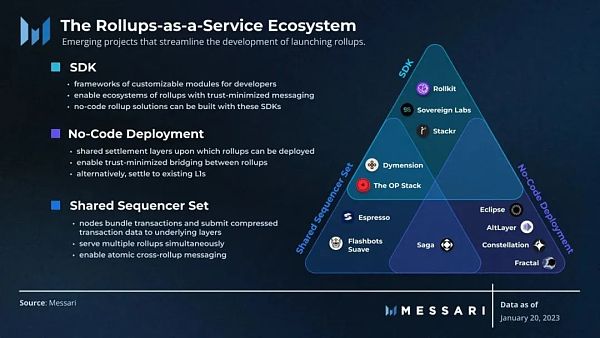 最后是 RaaS,OP Stack 和 Orbit 是最主要的玩家。其逻辑在于以太坊和 L2 的充分解耦,因此越来越多的 dApp 需要自行发链,而 L2 在不缺失主网安全性的同时,又可带来独属自身的自主权。