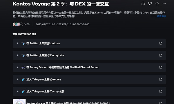 Zecrey旗下有两款产品Kontos 和 ZKLenger 。其中Kontos路线图的第三季度中明确提到社区激励。另外根据目前数据,该项目大概仅2万多人在卷,预计单号空投500$