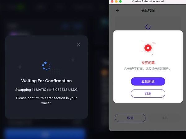 7.若你是第一次进行兑换,会弹出创建AA钱包的提示。按提示创建AA钱包即可