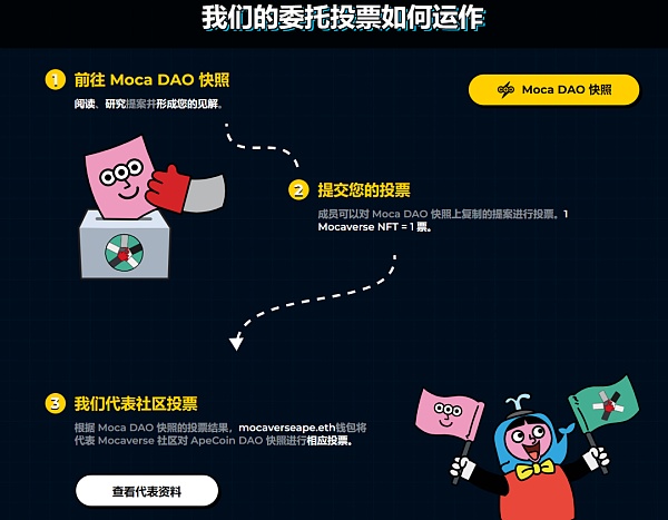 首先,我们将拥有一个创新的投票委托模型,让 Moca DAO 在 ApeCoin DAO 等有影响力的 DAO 中拥有发言权