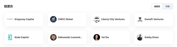 本轮融资由中国移动国际领投,其他投资方包括Kingsway Capital、Liberty City Ventures、GameFi Ventures 、Aleksander Larsen( Sky Mavis创始人)、Gabby Dizon( Yield Guild Games创始人)、 Koda Capital机构投资者等。Animoca Brands 执行主席兼联合创始人 Yat Siu 也参与了本轮融资。