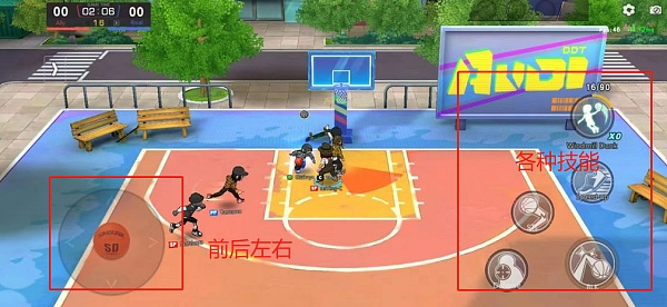 进入游戏后,右下方有盯人、投篮、加速、抢断等,会根据拿没拿球有变化,复杂也简单,这个自己打几把摸索下就会了。