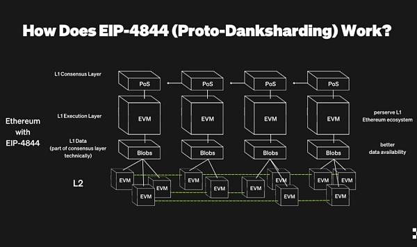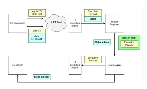 在EIP-4844坎昆升级后,以太坊可通过Blob机制将大量状态数据存储在链下,这不仅能降低layer2 Batch交易的成本消耗,同时又能增加存储空间来实现扩容。