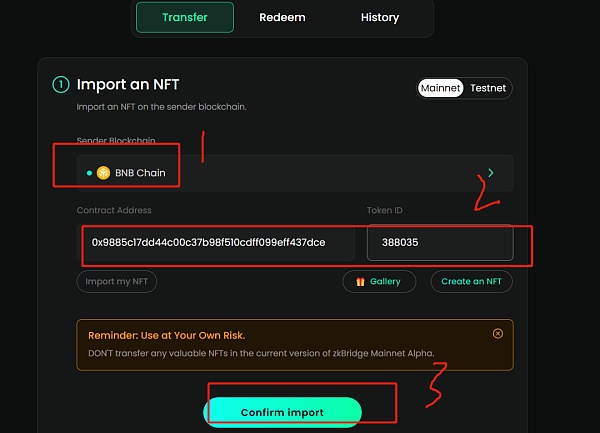 把刚刚铸造的nft跨到bnb网络