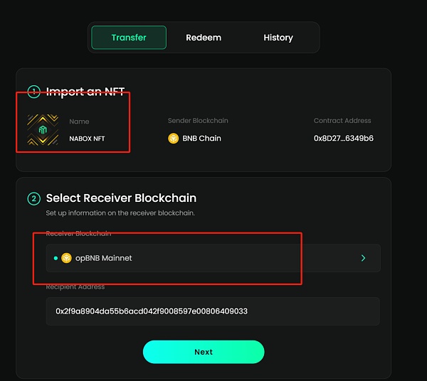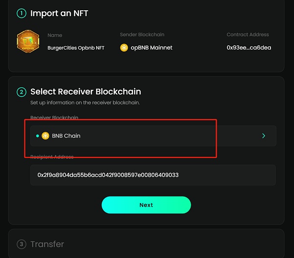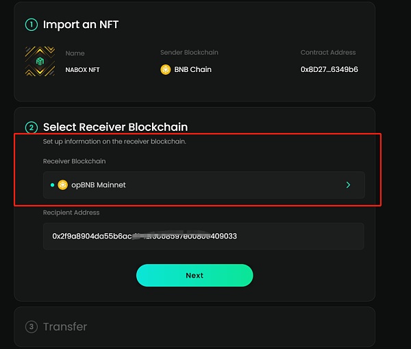 转移nft到opbnb,随便选择一个nft