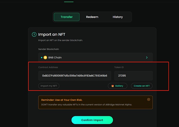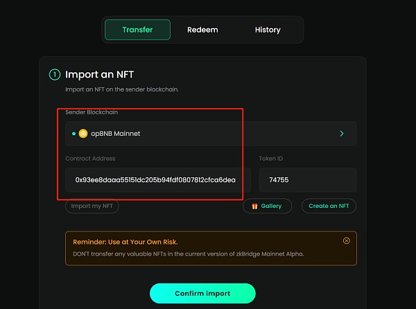 领取nft后开始跨链,直接选择zkbridge