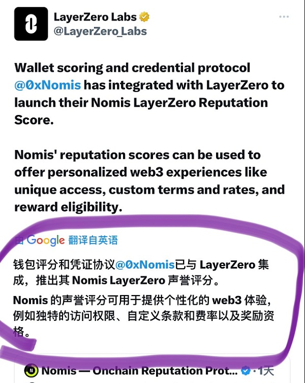 无论是这一次的Celestia还是layerzero还是zksync都在向这方面布局,值得一提的是layerzero在官推中明确表示将向nomis合作,这个项目方也出了zksync项目评分,zksync的官方人员曾提到空投标准可能考虑对应地址在以太坊主链的活跃情况。