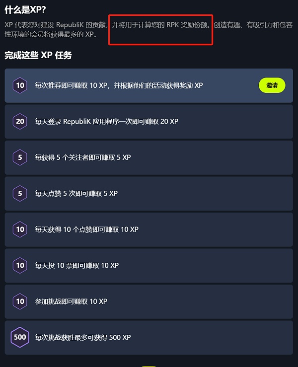 进入XP任务页面,完成相应任务即可赚取XP