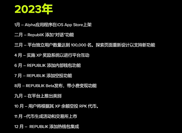 REPUBLIK 未来路线图包括: