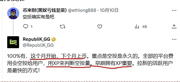 Web3内容平台 RepubliK_GG 正式官宣融资600万美元,OKX、HTX等参投,空投将于今年4季度部署。 还没注册的老铁抓紧上号吧,每天签到、点赞、发帖、投票可以0撸XP,官方明确表示下个月发币,XP直接决定空投数量。