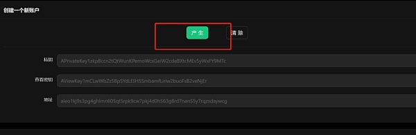 前往[ALEO SDK钱包设置页面](https://aleo.tools/account),点击"Generate"按钮生成私钥和地址,并妥善保存。