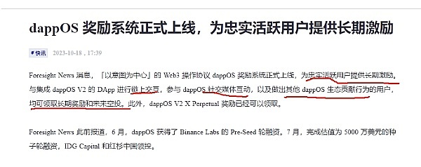 近期,红杉、IDG、币安等知名投资机构纷纷投资了@dappOS_com这个新项目。