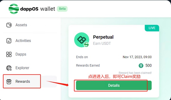 点击Dapps,与dappOS支持的dapp进行交互!perpetual还可以去开h约交互,加池子之前做过,就不在写了。