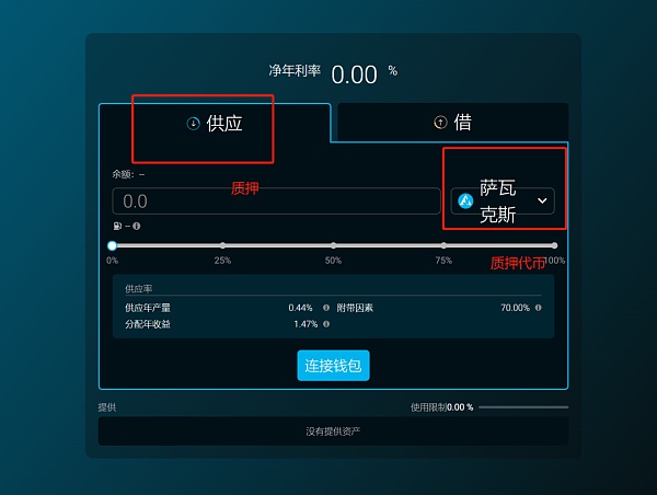 先质押代币借出ava,然后再借出avax,记得链接dappos钱包交互