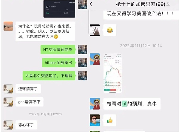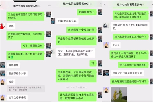 10 月 17 日 孙说,「今天是我入职Huobi的第九天了。……有人害怕孙哥会不会把我割了,明牌告诉你,放心不会割……」 ,一大堆散户看见 HT 爆拉,冲进去开合约做空再次被爆。