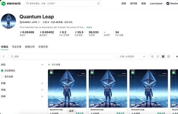 starknet的Quantum Leap NFT的价格约为9u,并且可以无条件领取。这提供了一个较为简单的参与活动的机会。