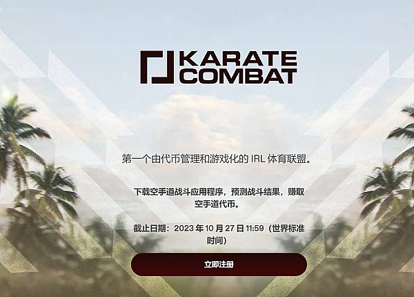 Karate Combat 是第一个由代币管理和游戏化的 IRL 体育联盟。CoinList 用户受邀通过下载联盟的移动应用程序(Android、iOS)并在接下来的三场现场体育赛事中玩“Up Only Gaming”来赚取 KARATE 代币。