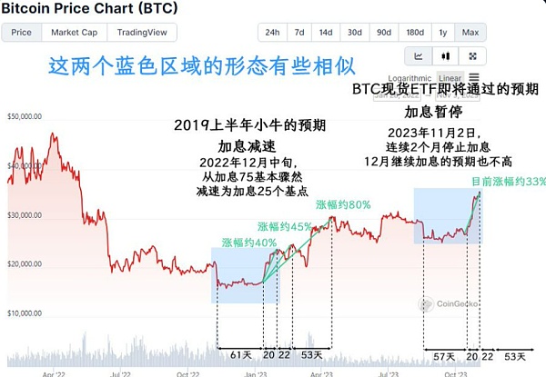 内部因素方面,上一次是因为市场预期2019年上半年会有小牛市,而这次是因为BTC现货ETF有可能通过的预期。